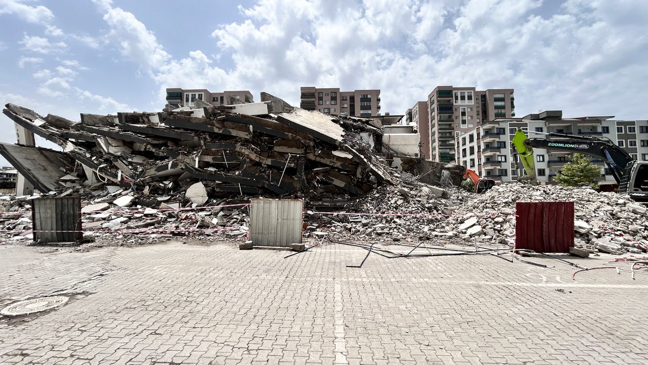 Kahramanmaraş merkezli depremlerde ağır hasar alan Hatay'da mahkeme süreci sona eren binaların yıkım ve enkaz kaldırma çalışmaları aralıksız devam ediyor.