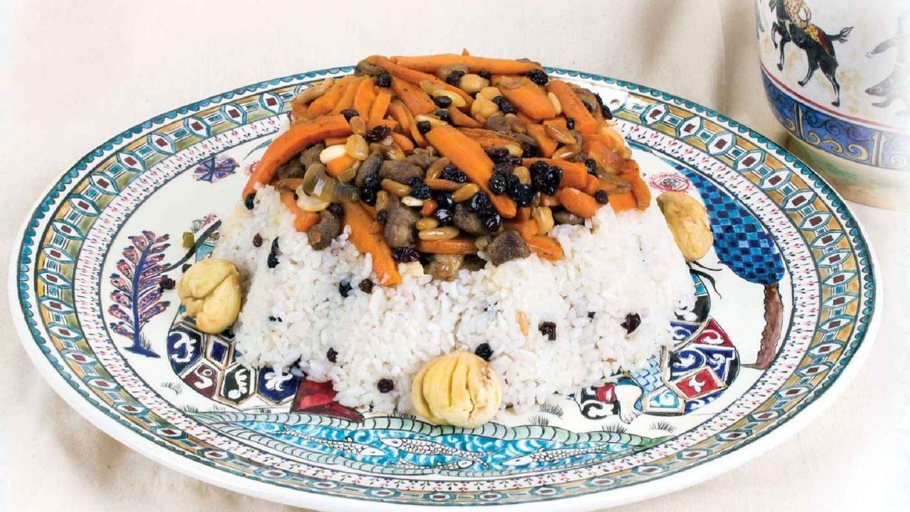 Nohudu 1 gün önceden suda bekletin. Pirinci bol suyla yıkayıp 20 dakika ılık tuzlu suda bekletin ve süzün. Eti kuşbaşı doğrayıp yaklaşık 1 saat pişirin. Nohudu haşlayın.