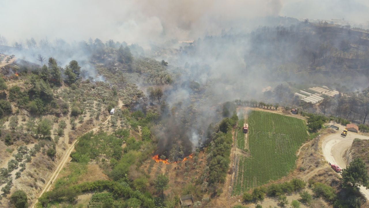 Havanın kararmasıyla birlikte hava müdahalesi sona ererken, kara ekiplerinin yangının önünü kesmek için yoğun çaba sarf ettiği bildirildi.