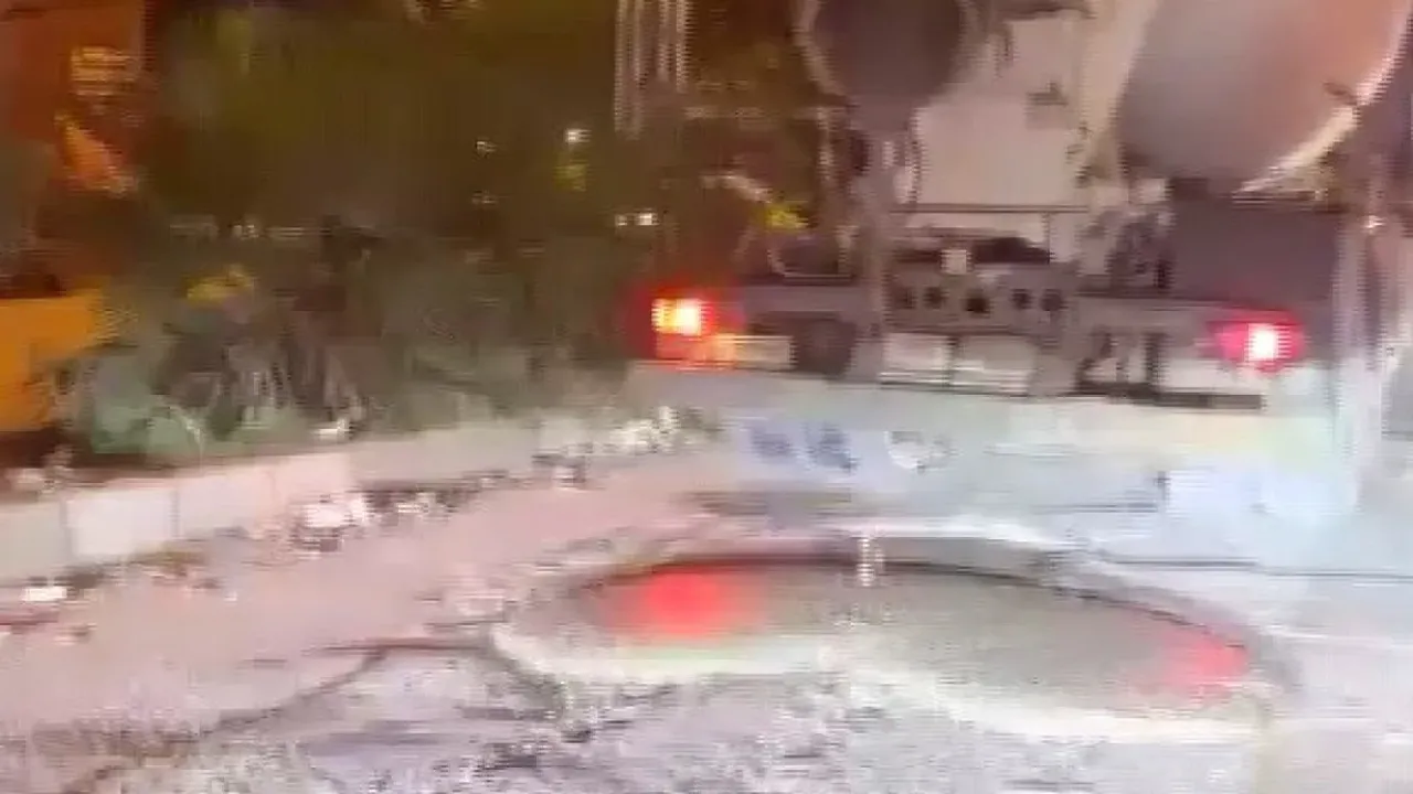 Yola beton döken mikser sürücüsü, trafikte bekleyen diğer sürücülerin cep telefonu kamerasıyla kaydedildi.