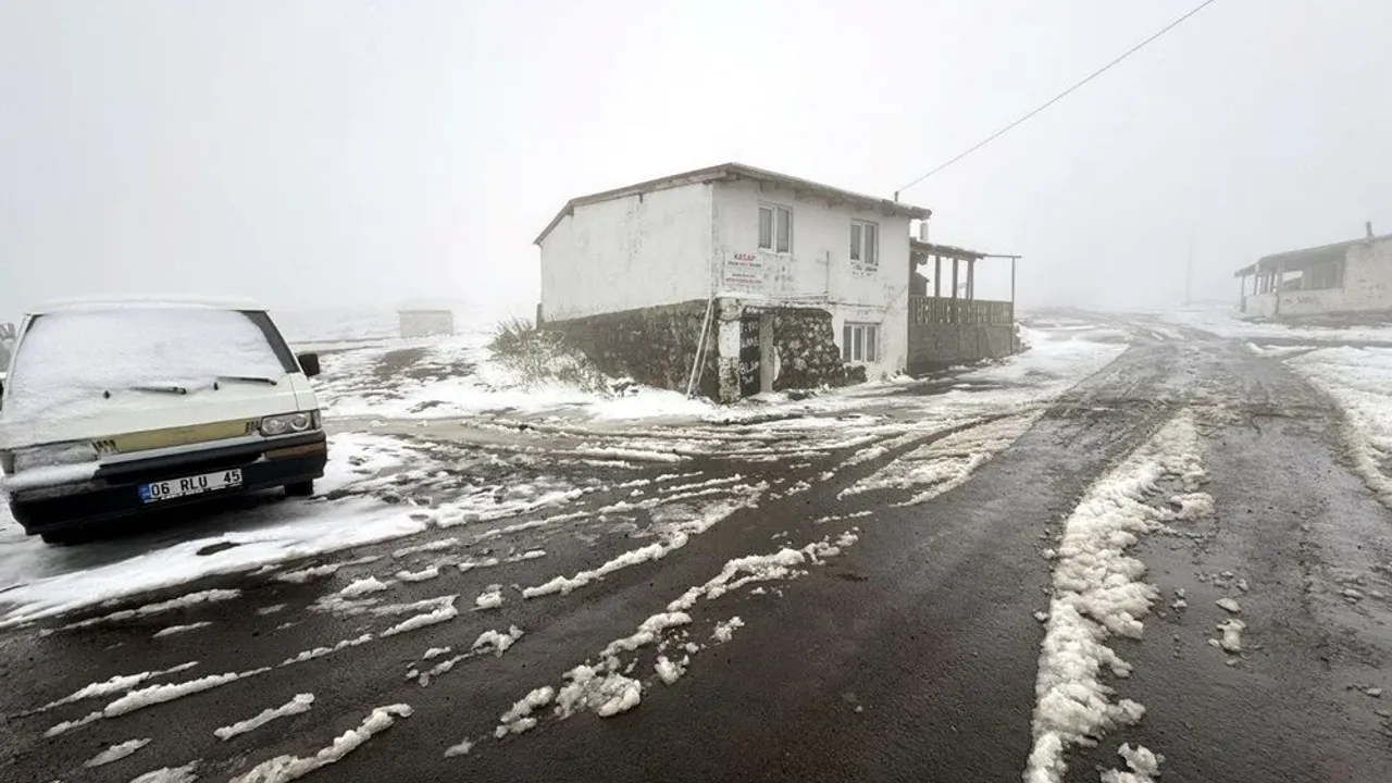 Hava sıcaklığının 7 dereceye düştüğü ilçenin yüksek kesimlerine kar yağdı.