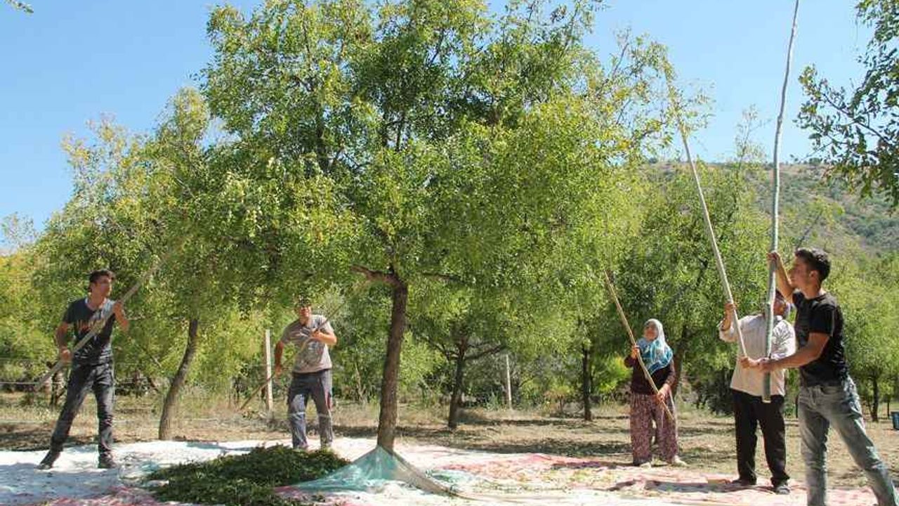 İlçenin önemli gelir kaynaklarından biri olan hünnabın hasadı için sabahları erkenden bahçelere giden işçiler, ağaçların altına örtü serdikten sonra özel yapım sırıklarla hünnapları çırparak yere düşürüyor. Örtülerin üzerinden toplanan hünnaplar, yapraklarından ayrılarak satılmak üzere paketleniyor.
