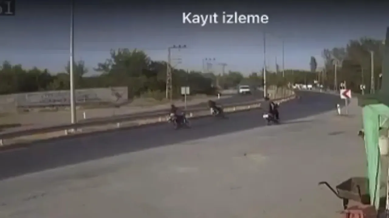 Görüntülerde, 3 motosikletin peş peşe ilerlediği, Ertekin’in motosikletinin kontrolünü yitirip kaza geçirdiği görüldü.