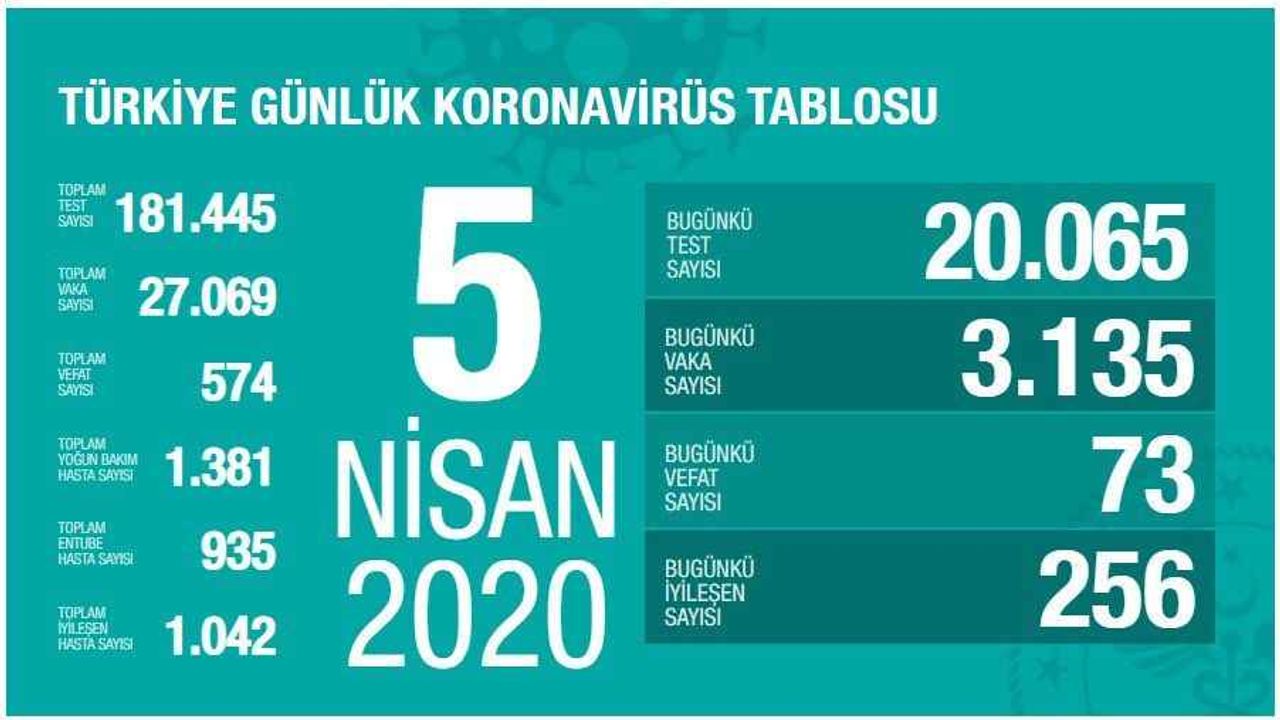 Tükiye geneli koronavirüs tablosu (11 Mart – 5 Nisan özet)