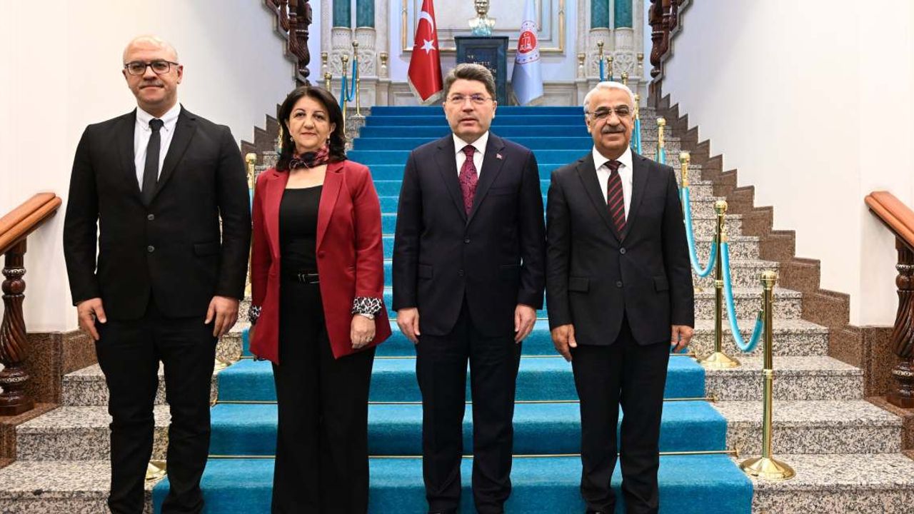 DEM Parti’nin İmralı Heyeti, süreç kapsamında kurulan komisyonun rapor aşamasında olmasına rağmen temaslarını sürdürüyor. Bu çerçevede heyet, Adalet Bakanı Yılmaz Tunç’u Adalet Bakanlığı binasında ziyaret etti. Görüşmeye DEM Parti adına Mithat Sancar, Pervin Buldan ve Faik Özgür Erol katıldı. Yaklaşık bir buçuk saat süren görüşmenin ardından heyet, kamuoyuna kapsamlı bir açıklama yaptı.