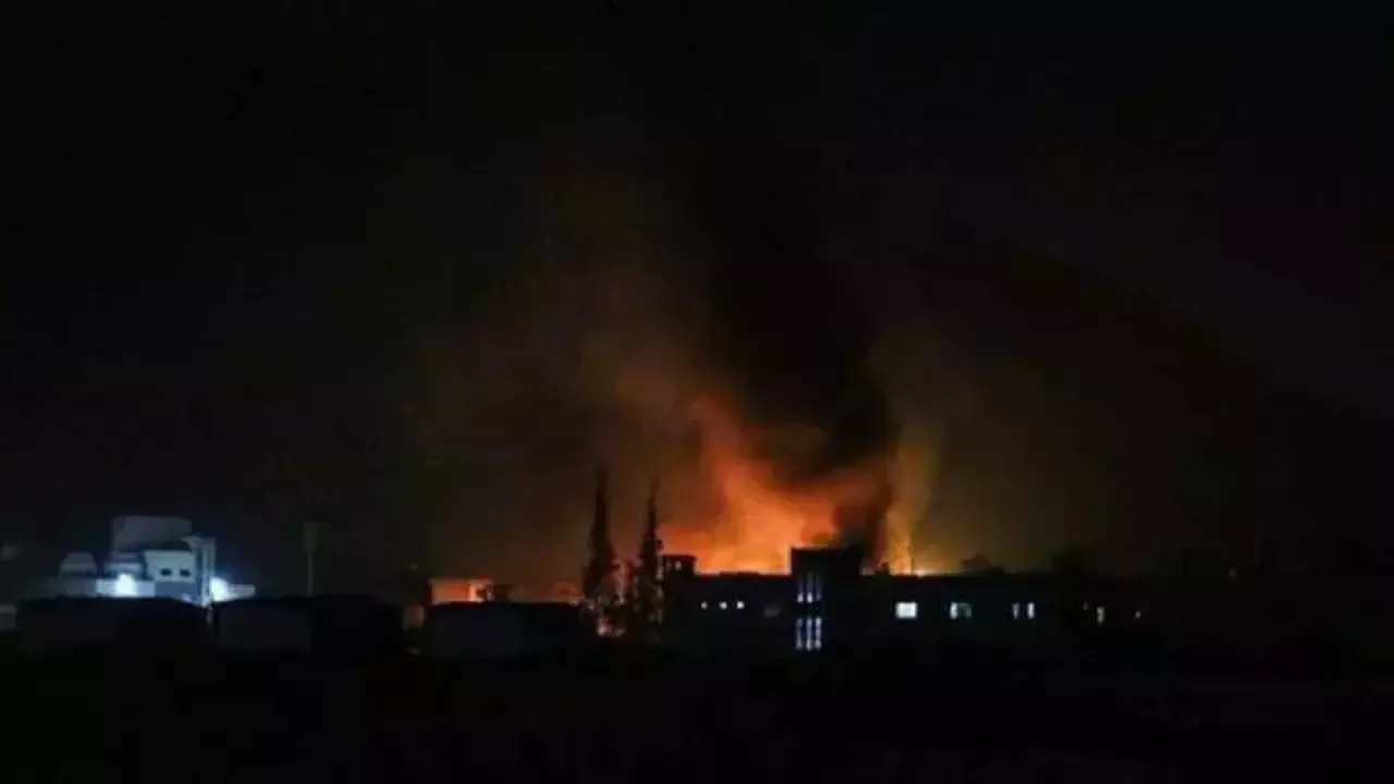 İsrail, Kisva'da bir silah deposunu vurdu. Saldırının ardından bölgede yangın çıktı.