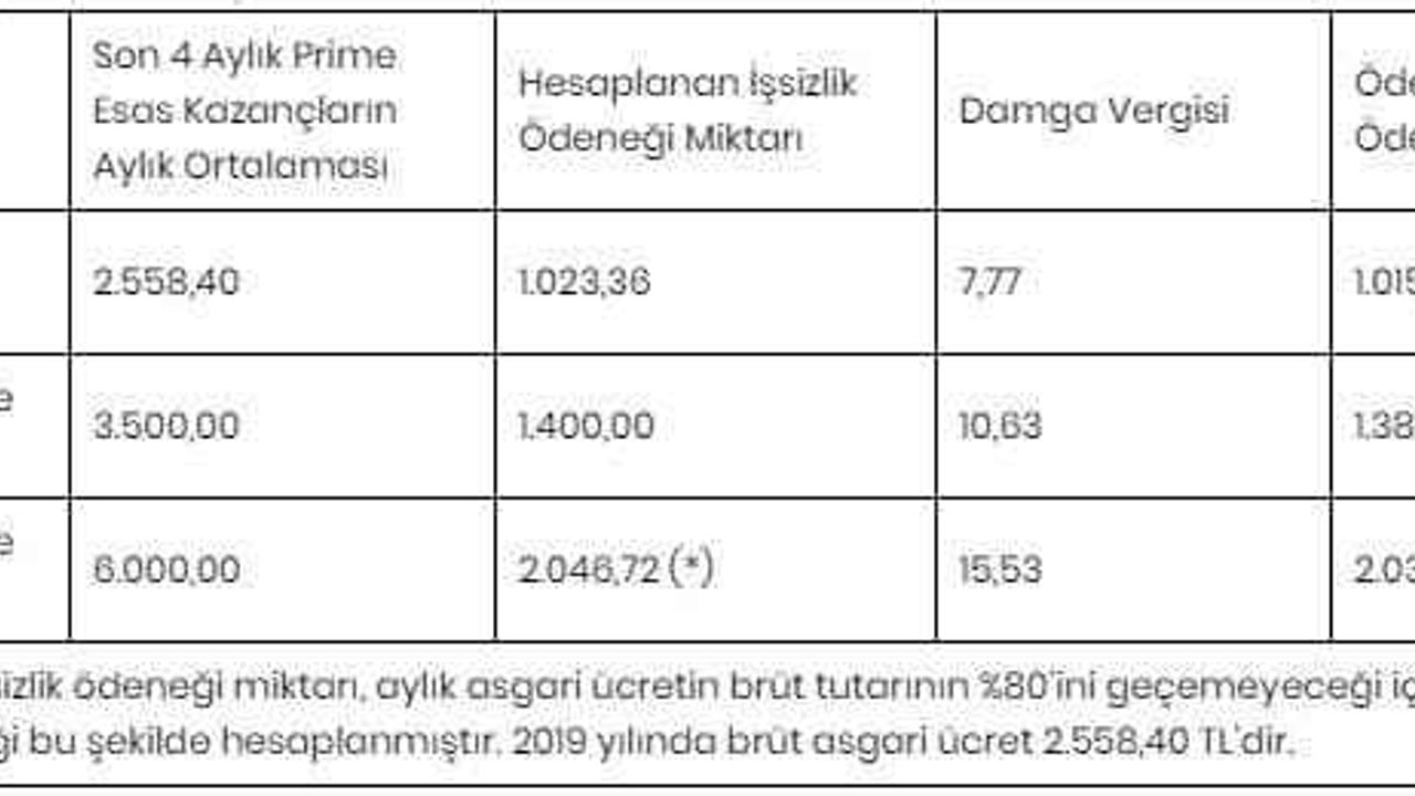 2019 yılı için aylık işsizlik ödeneği miktarı ise şöyle: