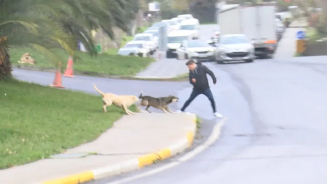 Ekiplerin yakalama çalışması sırasında, köpeklerin yoldan geçen 2 kişiye saldırması da kameraya yansıdı.