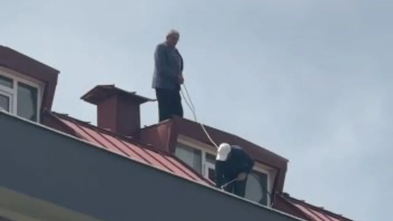Çatıdan düşme tehlikesine aldırmadan işine devam eden şahıslar, çevredeki vatandaşlarda panik yarattı.