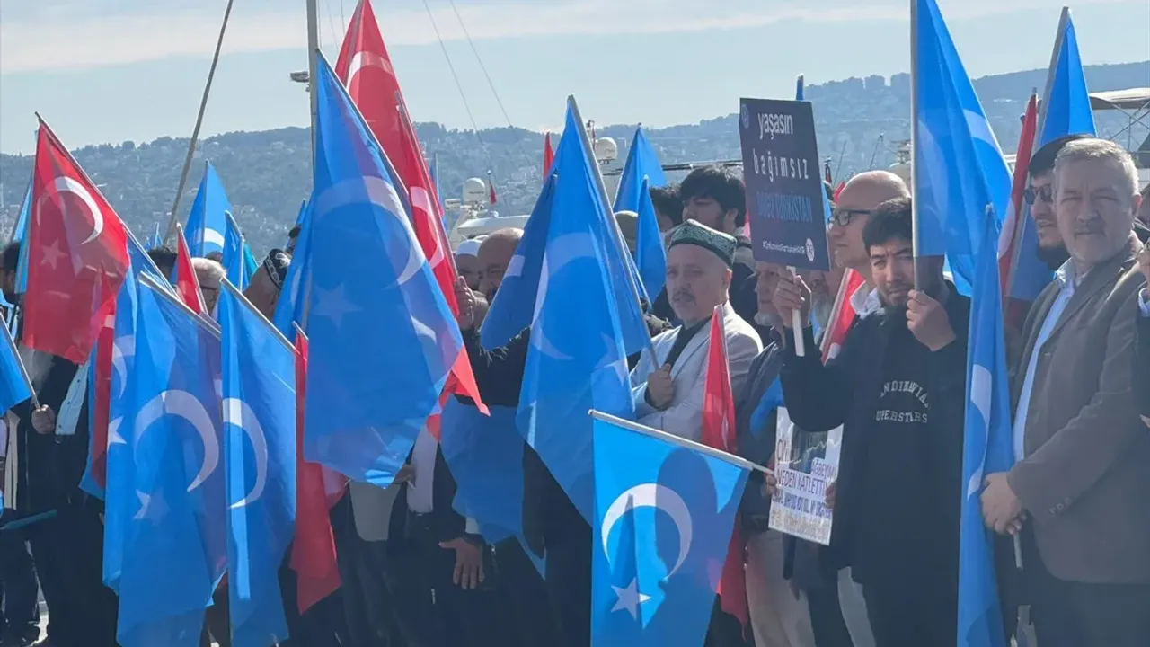 Çin'in Sincan Uygur Özerk Bölgesi'ne yönelik politikaları, İstanbul'un Çin Konsolosluğu yakınında protesto edildi.