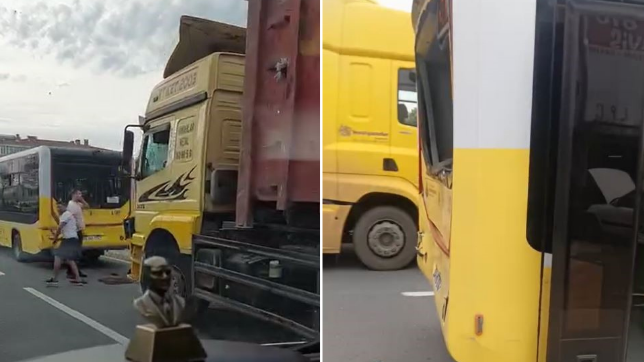İstanbul'un Büyükçekmece ilçesi Tepecik Mahallesi Ulus Caddesi'nde saat 11.30 sıralarında yaşandı. Edinilen bilgilere göre, caddede seyir halinde olan İETT otobüsüne arkadan gelen kamyon çarptı.
