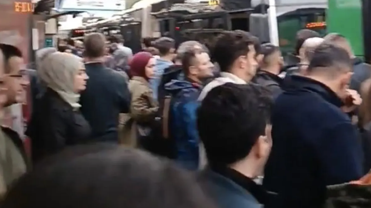 Metrobüsün arıza yapması sonrası durakta yoğunluk oluşurken, vatandaşlar dakikalarca bekledi.