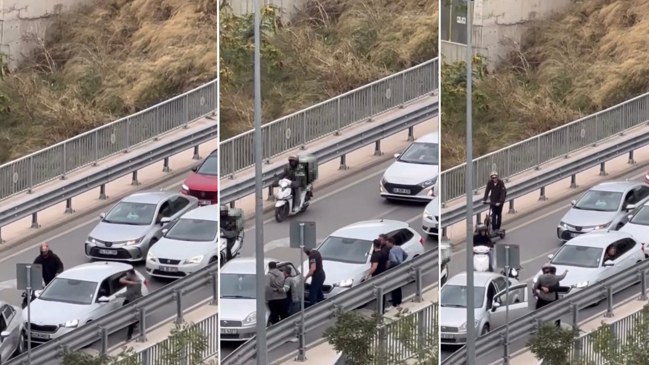 Görüntülerde sürücülerin tartıştığı, bir kişinin sopayla saldırdığı ve tarafların çevredekiler tarafından güçlükle ayrıldığı anlar yer aldı.