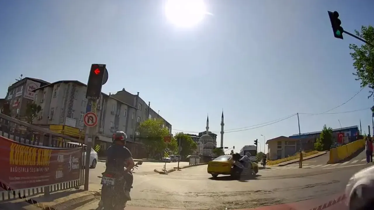 Bu sırada karşı yönde seyreden motosiklet sürücüsü, taksi ile çarpıştı.