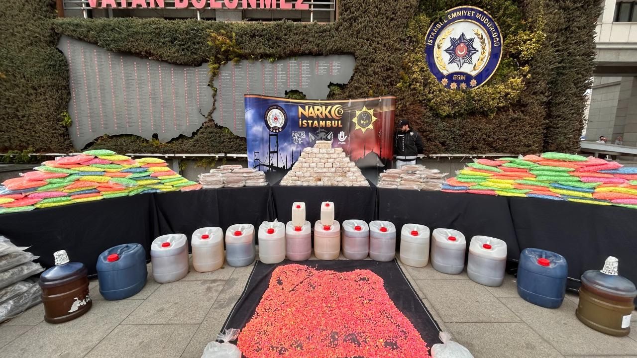 Adreslerde yapılan aramalarda 370 kilo 850 gram metamfetamin, 490 kilo 300 gram skunk, 70 kilo 995 gram eroin, 34 kilo 800 gram kokain, 1 milyon 446 bin uyuşturucu hap, 72 kilo 200 gram katkı maddesi ele geçirildi.