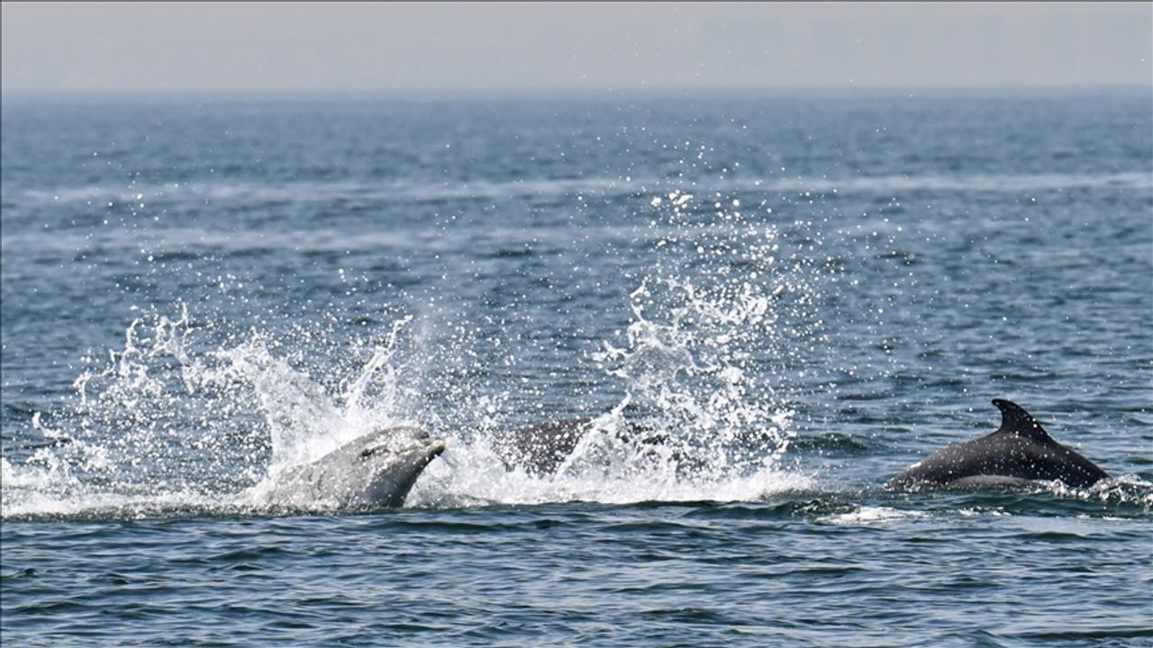 Sürü şeklinde ilerleyen yunusların gösterisi görsel şölen oluşturdu.