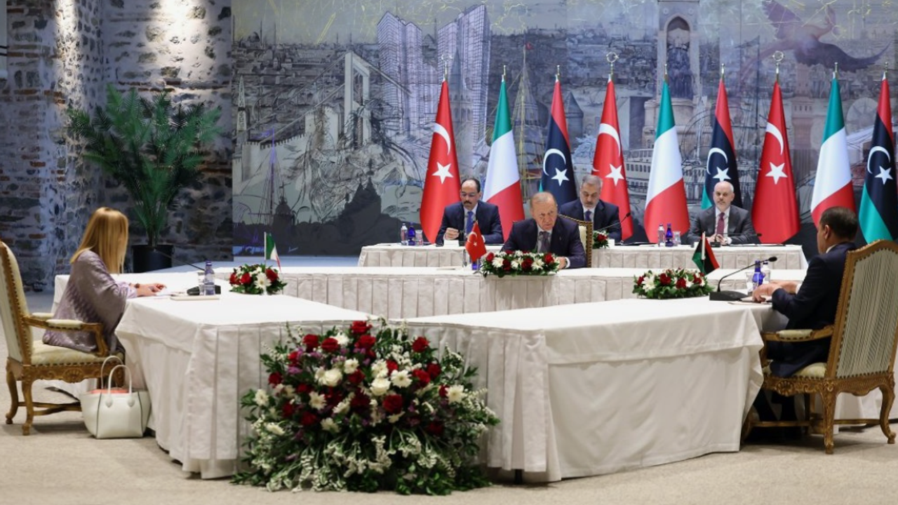 Cumhurbaşkanı Recep Tayyip Erdoğan, bugün İtalya Başbakanı Giorgia Meloni ve Libya Ulusal Birlik Hükümeti Başbakanı Abdulhamid Dibeybe'yi Türkiye, İtalya ve Libya İşbirliği Zirvesi kapsamında kabul etmişti.
