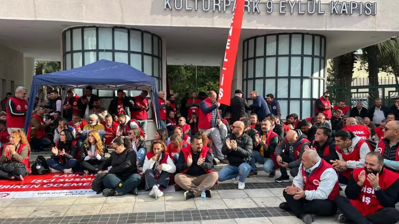 Açıklamanın ardından bir süre oturma eylemi yapan işçiler, daha sonra Kültürpark'ın 9 Eylül kapısına yürüyerek, oturma eylemine orada devam etti.