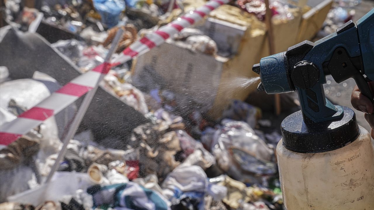 Buca ilçesi Seyhan Mahallesi'ndeki esnaf, çöp yığınlarının üzerine mazot dökerek haşereleri uzaklaştırmayı amaçladı. Ayrıca çöplerin yola taşmaması için atıkların biriktiği alanın etrafına şerit çekildi.