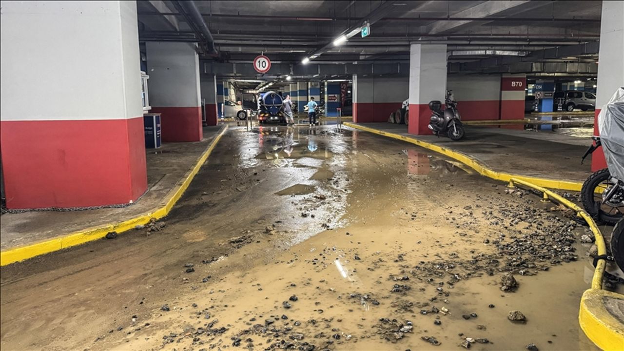 Otoparkı su basarken olay yerine İSKİ ekipleri yönlendirildi.