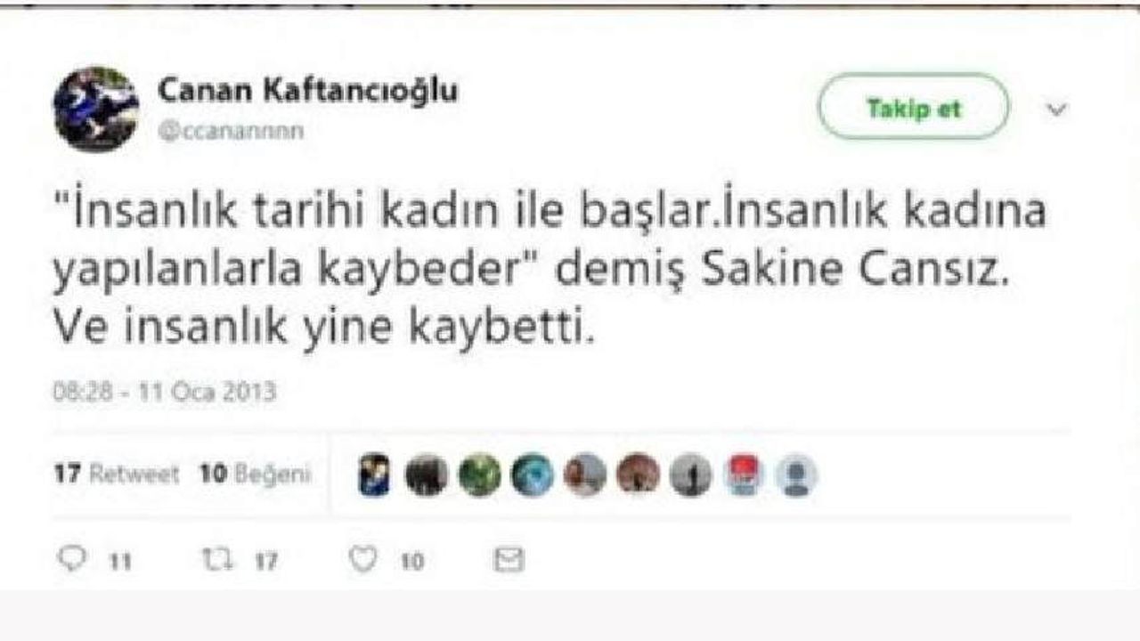 Terör örgütü PKK'nın kurucularından ve Paris'te öldürülen Sakine Cansız hakkında daha evvel 'devrimci kadın' ifadelerini kullanan ve ölümünü insanlığın kaybı olarak değerlendiren Kaftancıoğlu, "Sakine Cansız Avrupa'nın orta yerinde infaz edilmiştir. Her ne olursa olsun hiç kimsenin infaz edilmesi yapılan işin yanlış olduğunu söylememe engel değil" ifadelerini kullandı.