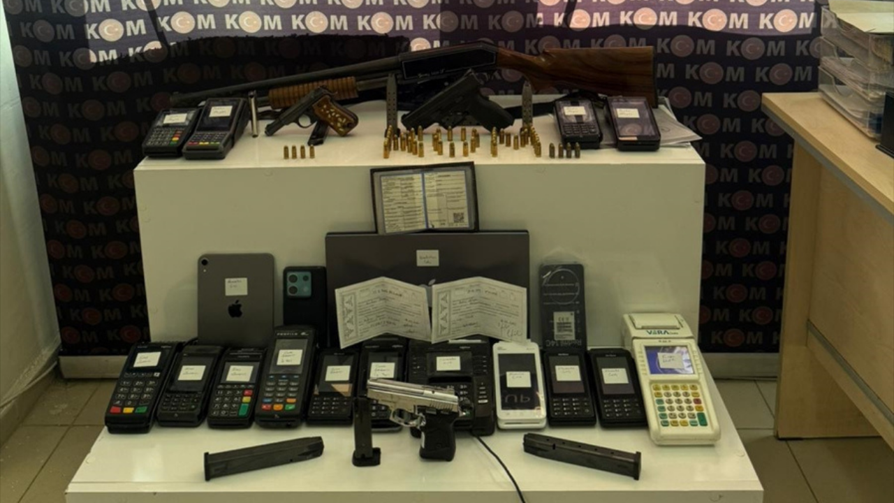 8 şüphelinin gözaltına alındığı operasyonda 2 ruhsatsız tabanca, av tüfeği, kurusıkı tabanca, 15 pos cihazı, senet, tapu sözleşmeleri ve dijital materyaller ele geçirildi.