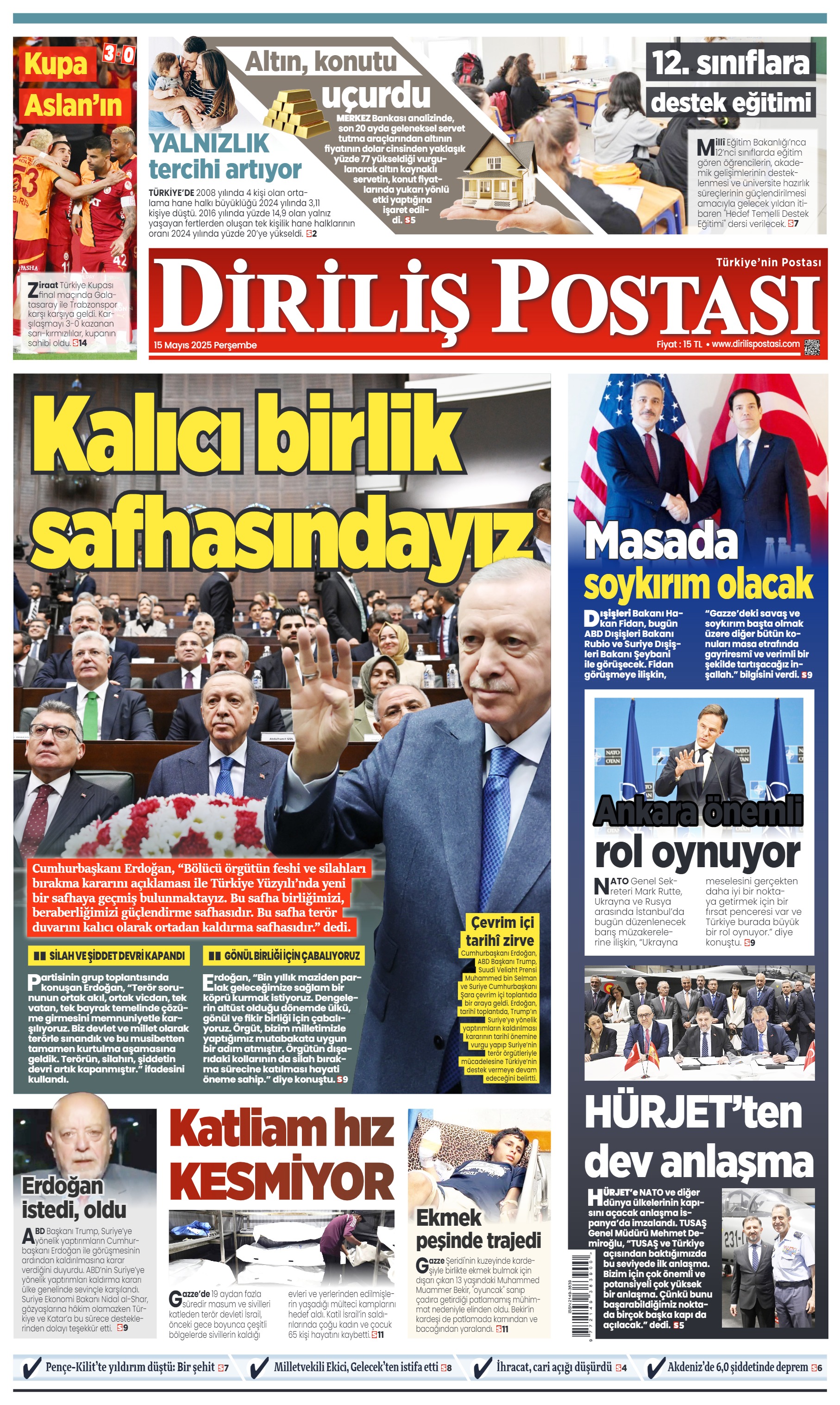 Cumhurbaşkanı Erdoğan, “Bölücü örgütün feshi ve silahları bırakma kararını açıklaması ile Türkiye Yüzyılı’nda yeni bir safhaya geçmiş bulunmaktayız. Bu safha birliğimizi, beraberliğimizi güçlendirme safhasıdır. Bu safha terör duvarını kalıcı olarak ortadan kaldırma safhasıdır.” dedi.