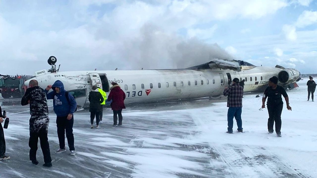 Kanada'danın Toronto kentinde yer alan Pearson Havalimanı’nda akılalmaz bir uçak kazası meydana geldi. Delta Air Lines'a ait Minneapolis'ten kalkan 80 yolculu bir CRJ900 uçağı, Toronto Pearson Uluslararası Havalimanı'na acil inişi sırasında takla atarak ters döndü.
