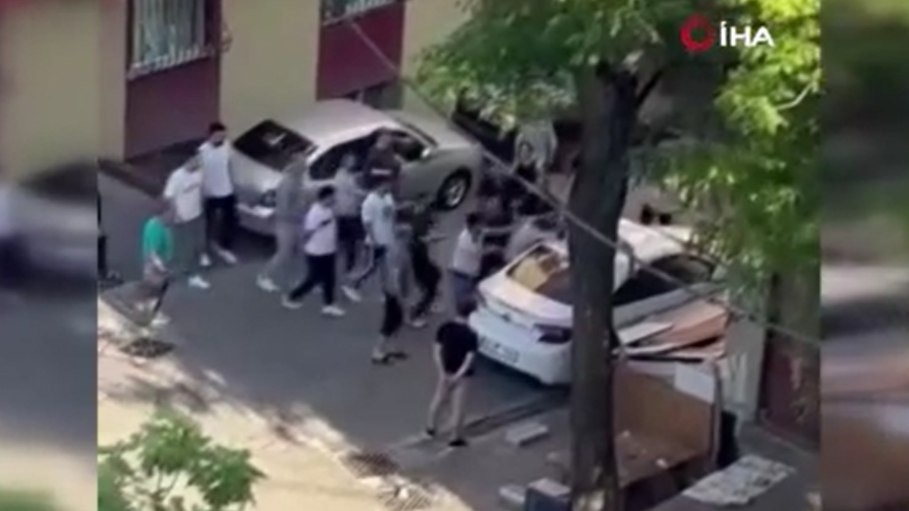 Görüntülerde, madde etkisinde olduğu iddia edilen şahsın kalabalık bir grup tarafından dayak yediği şahsın ise dayaktan kaçabilmek için bir aracın üstüne çıktığı anlar yer aldı.