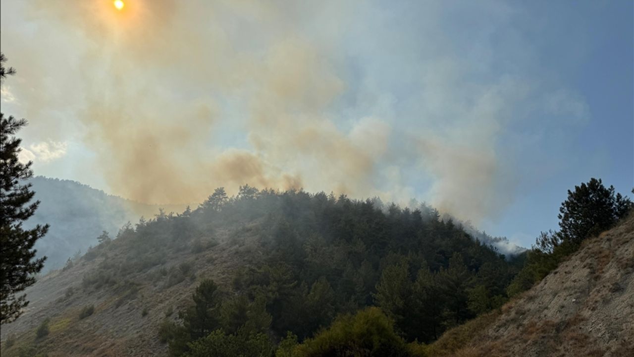 Yüksek ve eğimli bölgede etkili olan alevlere müdahale devam ediyor.
