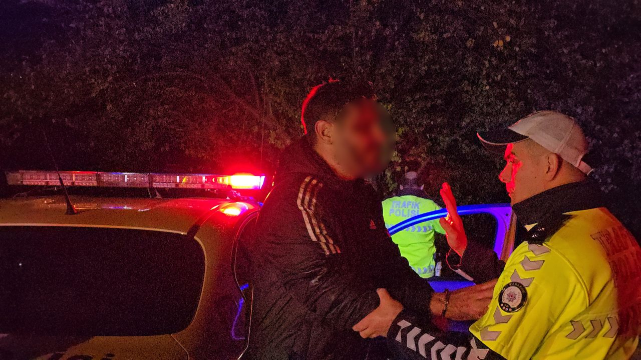 Polis ekiplerine zor anlar yaşatan sürücü, kaçmaya çalışırken yere düşerek kafasından hafif şekilde yaralandı.