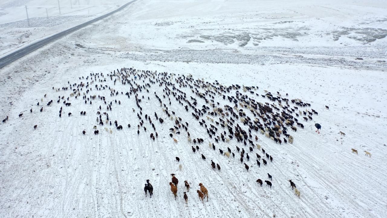 Şakir Uyusun da kışın erken geldiğini ifade ederek, sürülerini kar altında köye ulaştırmaya çalıştıklarını söyledi.