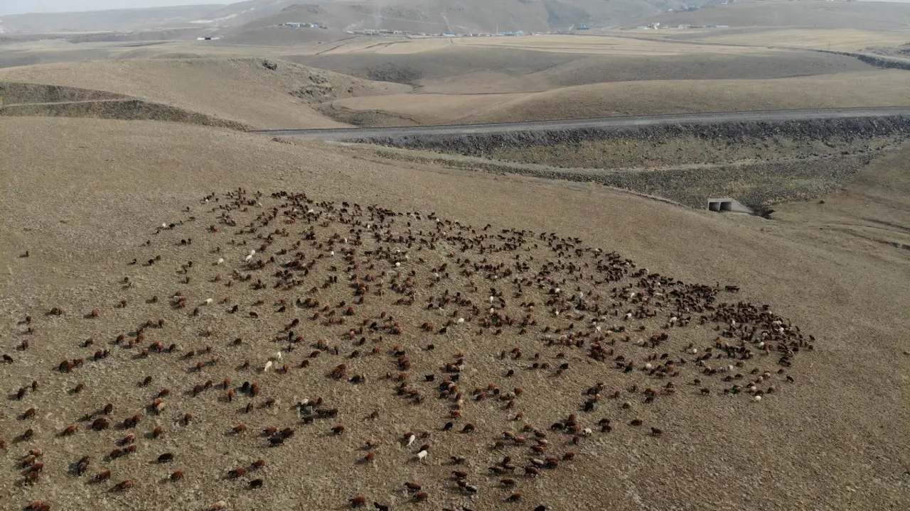 Göçerlerin ve hayvanların kilometrelerce süren yolculuğu, binlerce küçükbaş hayvanın arazilere yayılması bölgenin kültürel ve doğal yaşamının vazgeçilmez bir parçası olarak havadan görüntülendi.