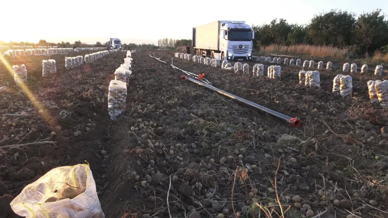 TIR ve kamyonlara yüklenen torbalanmış patatesler, ihraç edilmek Katar, Birleşik Arap Emirlikleri ve Suudi Arabistan gibi ülkelere gönderiliyor.