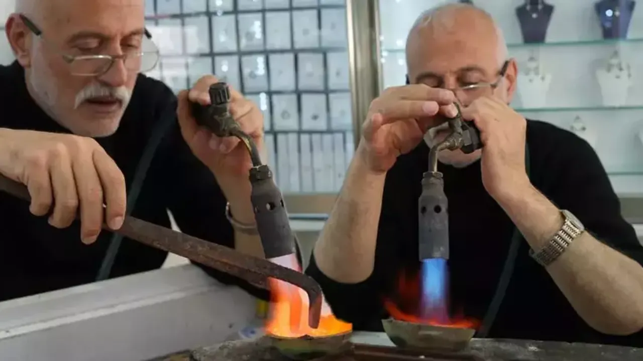 Amcalarından babasına, babasından da kendisine kalan mesleği 30-35 yıldır devam ettiren kentin tek gümüş ustası Aziz Kantar, saf haldeki gümüşü eriterek işe başlıyor.