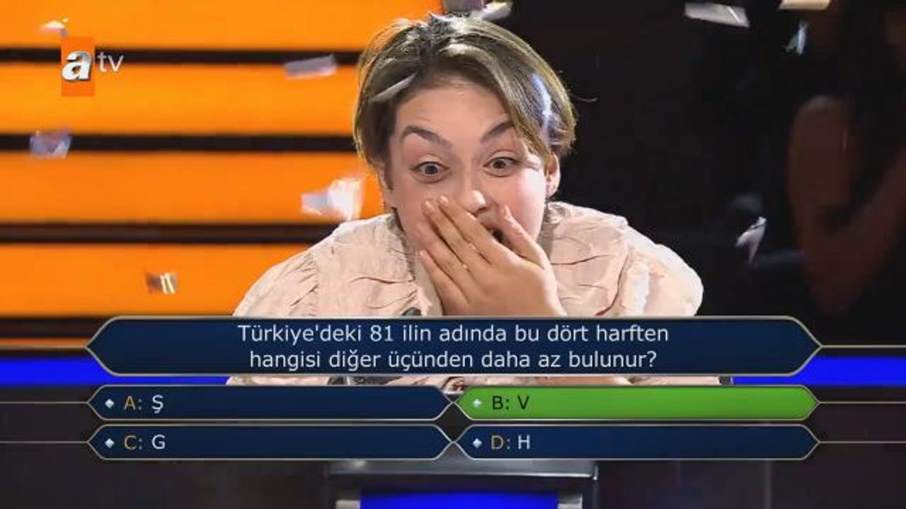 . Kim Milyoner Olmak İster yarışmasında Rabia Birsen Güvercin , 1 milyonluk soruya gelmeyi başardı. Son soruda " Türkiye'deki 81 ilin adında bu dört harften hangisi diğer üçünden daha az bulunur?" sorusuyla karşılaşan doğru cevabı vererek büyük ödüle ulaştı. Doğru cevabı verdiğini görünce büyük sevinç yaşayan yarışmacı, gözyaşlarına hakim olamadı.