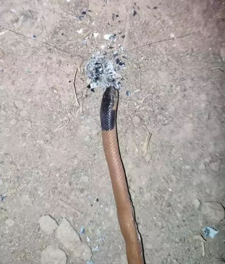Bitlis'te Hizan ilçesi kırsallarında misafirliğe giden Veteriner Hekim Rehber Altıntaş, köylülerin şuursuzca öldürdüğü yılanı yakından inceledi.