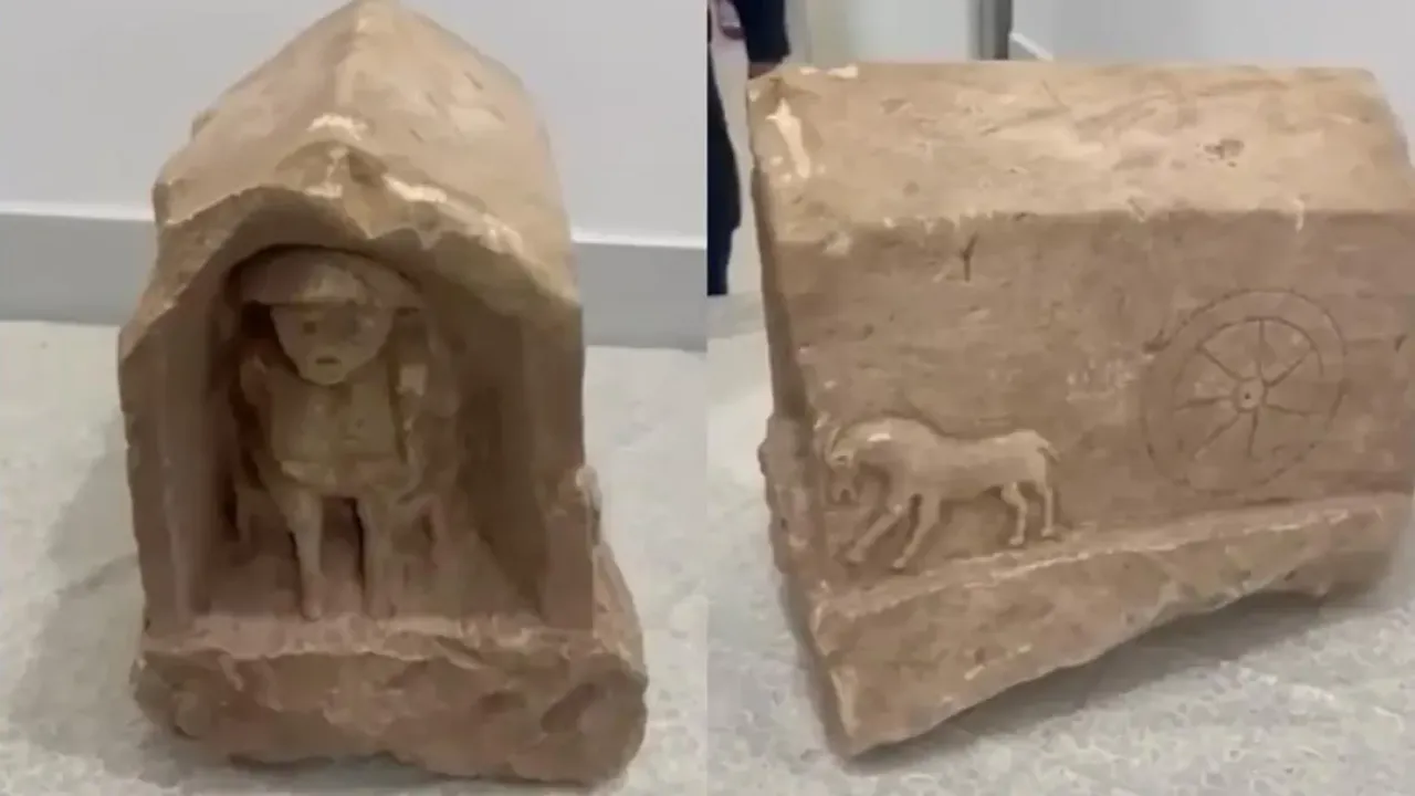 Anadolu Medeniyetler Müzesi uzman ekiplerince yapılan incelemede bir yüzünde insan, diğer yüzünde ise hayvan figürü bulunan stelin kireçtaşından yapıldığı ve Roma dönemine ait olduğu belirlendi.