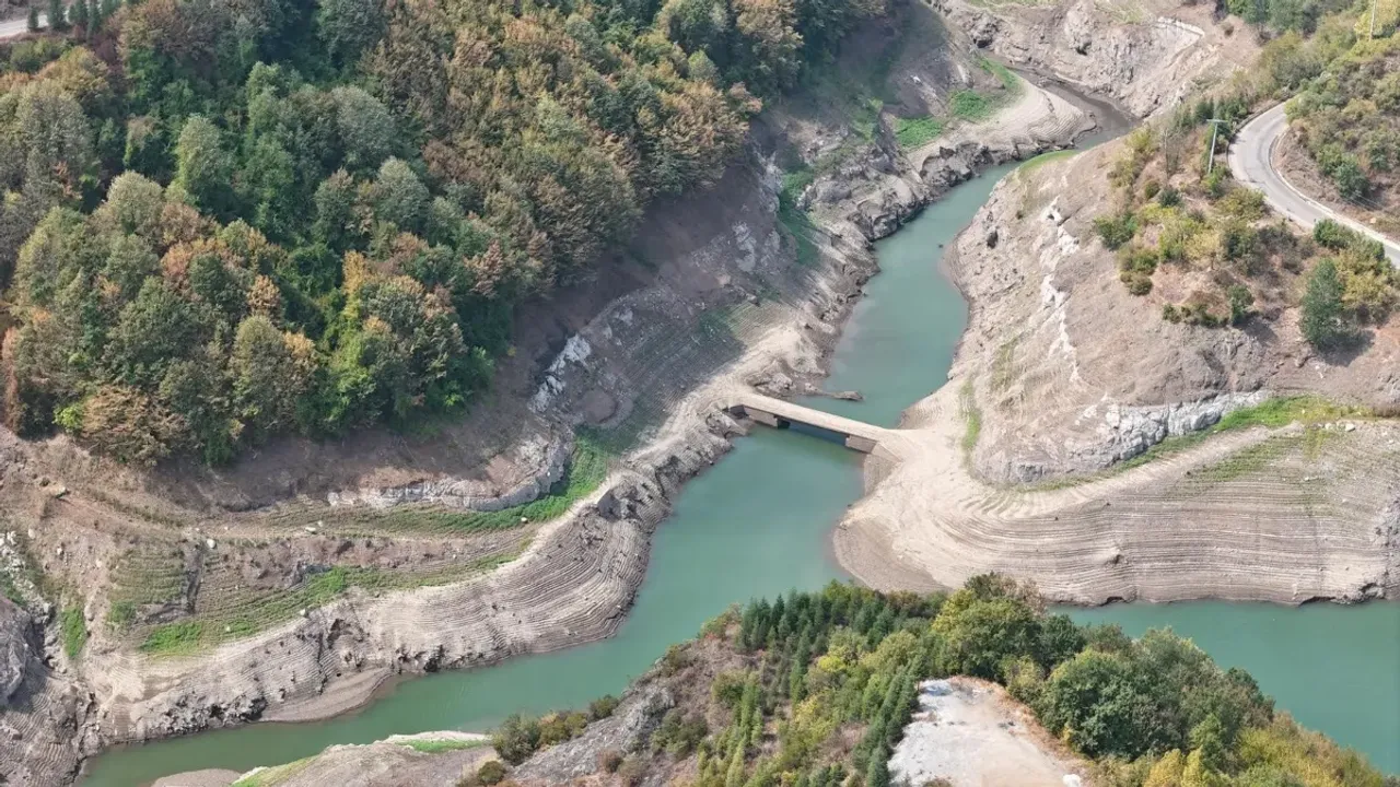 Yuvacık Barajı'ndaki su seviyesinin düşüşü, baraj inşa edilmeden önce bölgede ulaşım için kullanılan tarihi köprüyü de gün yüzüne çıkardı.