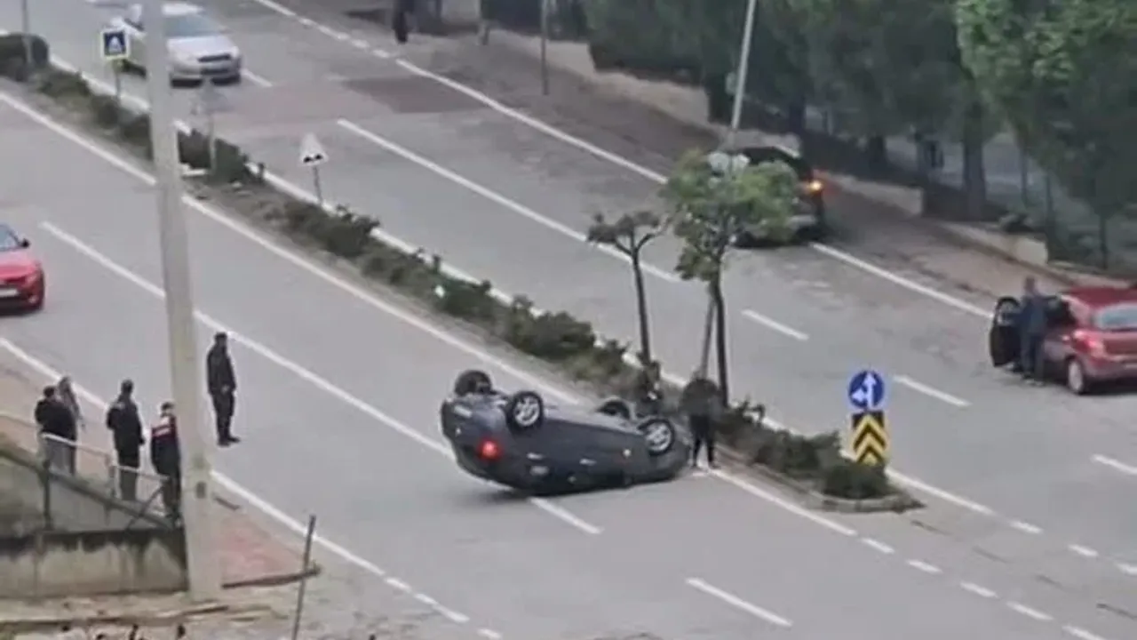 Ceylin S.’nin kontrolünü yitirdiği otomobil takla attı. Kazada sürücü hafif yaralandı.