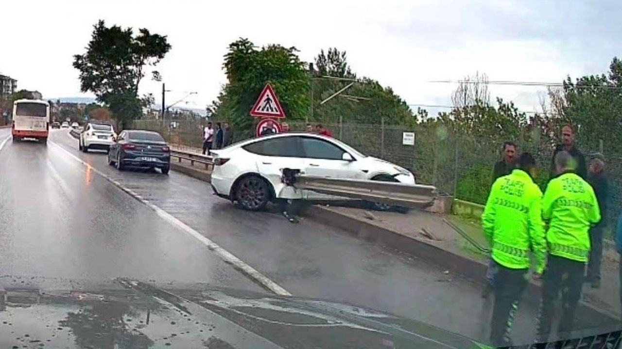 Çarpışmanın etkisiyle bariyer aracın bir tarafından girdi, diğer tarafından çıktı.