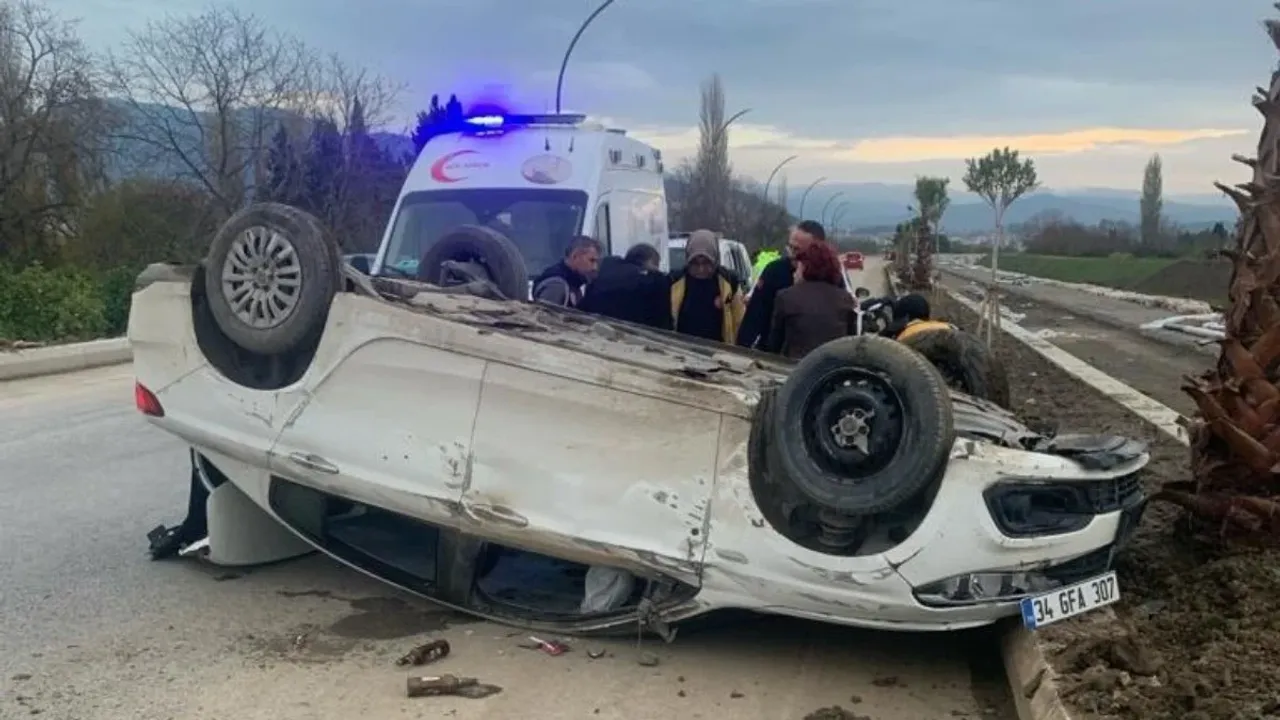 Balıkesir'in Edremit ilçesinde M.S. yönetimindeki otomobil, Akçay istikametinden Edremit'e seyir halindeyken Ülkü Yolu mevkiinde direksiyon hakimiyetinin kaybedilmesiyle refüje çarparak takla attı.