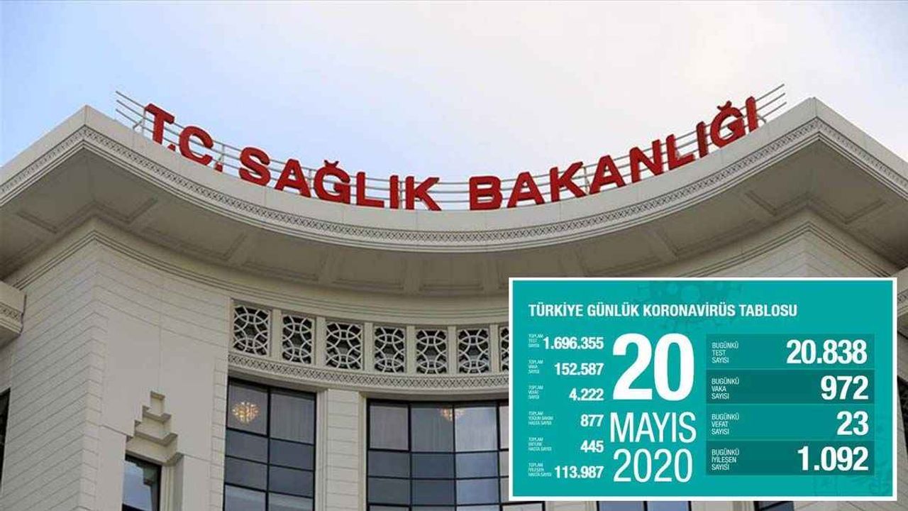 Sağlık Bakanlığının internet sitesinde yer alan ve Sağlık Bakanı Fahrettin Koca’nın da Twitter’dan paylaştığı “Türkiye Günlük Koronavirüs Tablosu”nun güncel verilerine göre, bugün 20 bin 838 test yapıldı ve 972 kişiye Kovid-19 tanısı konuldu.
