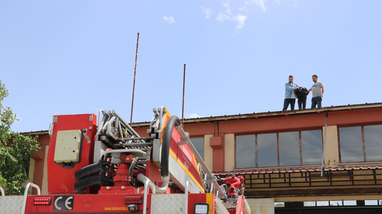 Kovalamacanın ardından şüpheli genç, Kütahya Dumlupınar Üniversitesi Yerleşkesi'ndeki marangoz atölyesinin çatısına çıktı.