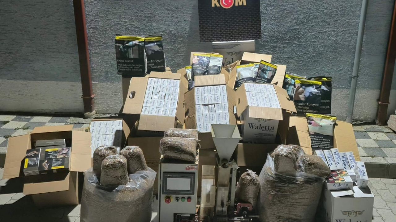 Edinilen bilgiye göre, KOM Şube Müdürlüğü ekipleri tarafından Tavşanlı'da bulunan iki ayrı ikamete yapılan operasyonda; 86 bin 200 adet makaron, 1 adet sigara sarma makinesi, 80,5 kilogram kıyılmış tütün ele geçirildi.