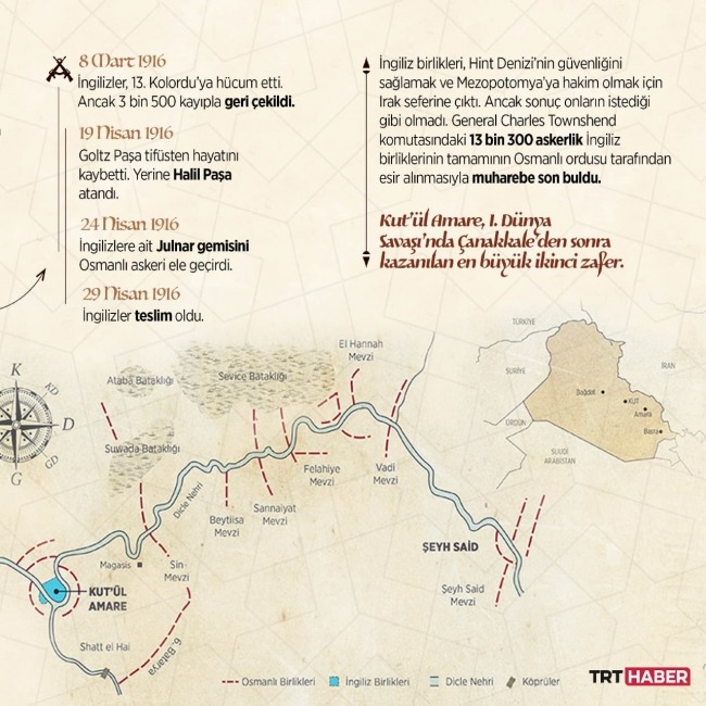 - Osmanlı Ordusu, General Halil Paşa komutasında İngiliz ilerleyişini durdurmak için kahramanca bir mücadele vermiştir.