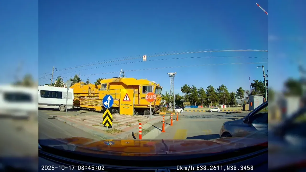 Trenin geçtiği hemzemin geçitteki tehlikeli anlar, bir aracın güvenlik kamerasına saniye saniye yansıdı.
