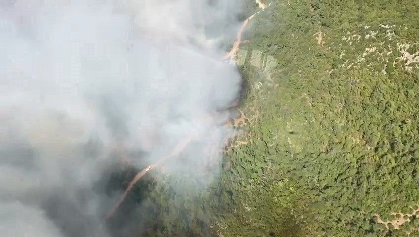 Ekiplerin yangını kontrol altına alma çalışmaları sürerken, yangına, 8 uçak, 8 helikopter, 36 arazöz, 13 su ikmal ve 6 dozer ile müdahale devam ediyor.