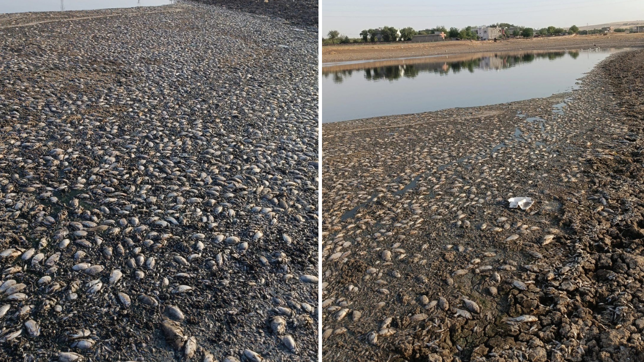 Mardin’in Mazıdağı ilçesinde bulunan gölette kuraklık nedeniyle su çekilince binlerce balık telef oldu. Mazıdağı ilçesine bağlı Şanlı köyünde bulunan göletin suyu kuraklık nedeniyle çekildi.