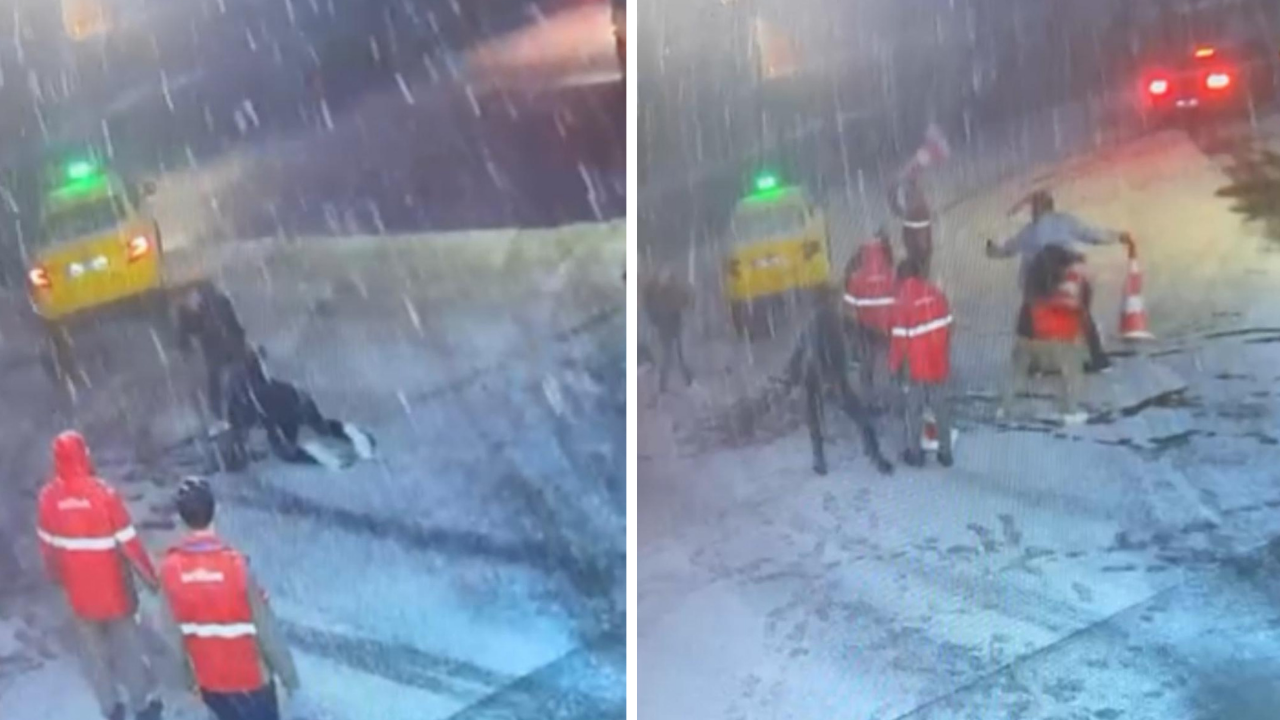 Saldırıyı gören istasyon çalışanları ellerine aldıkları dubalarla şüpheliye müdahalede bulundu.